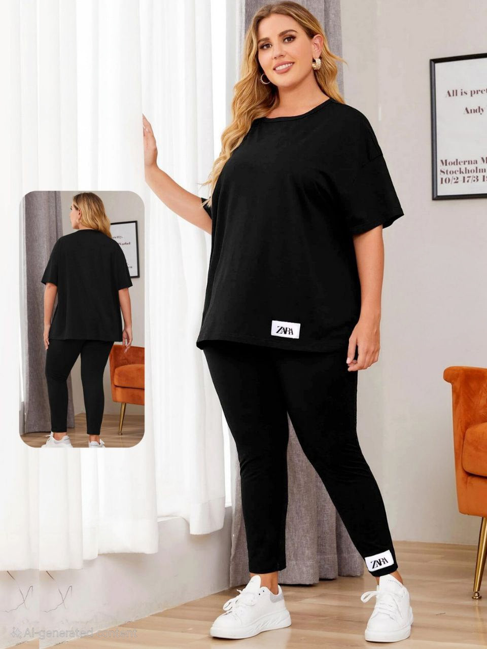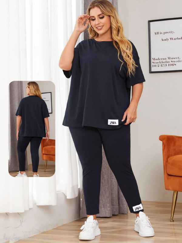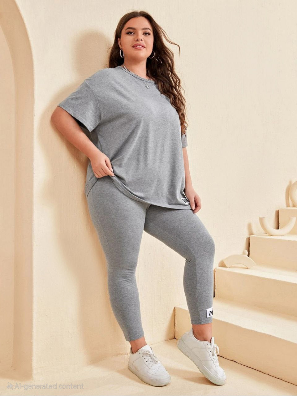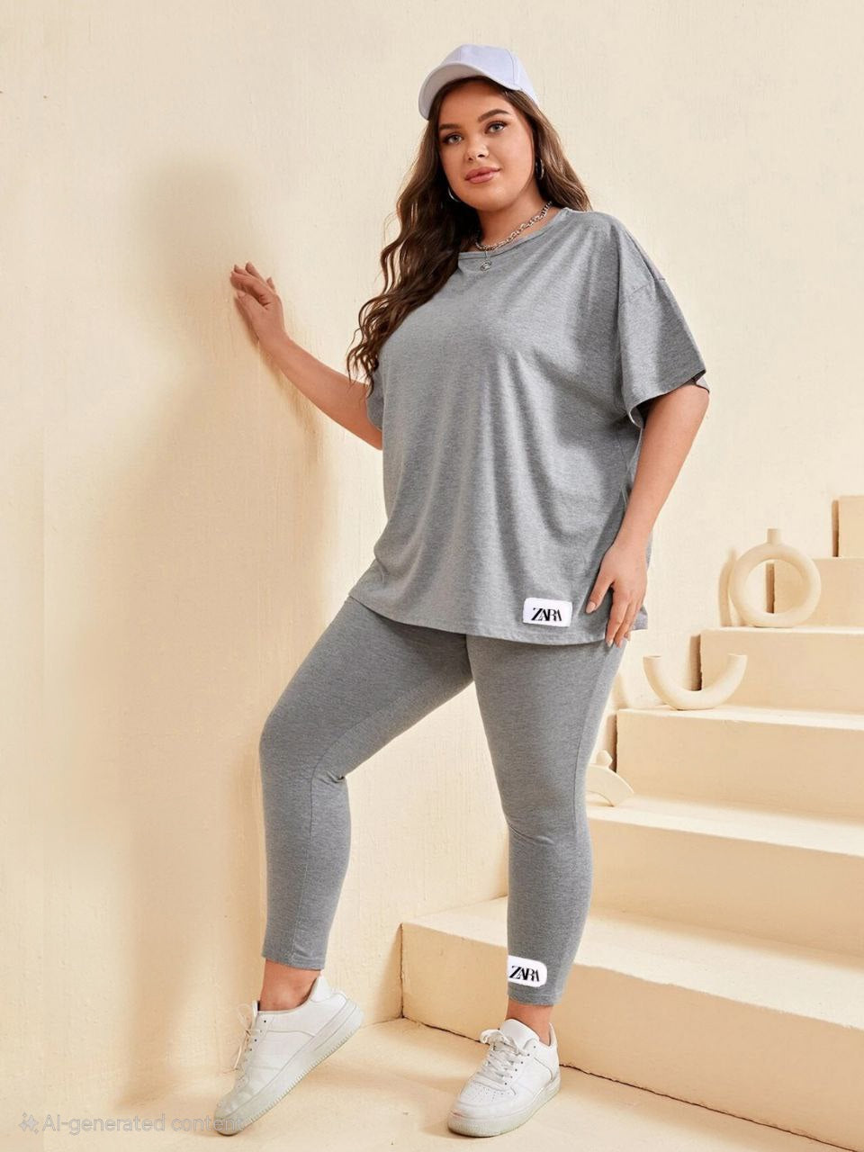 التصميم عملي وبسيط، تيشيرت أوفر سايز مع بنطلون ليكرا سكيني، وألوان كلاسيك أسود أو رمادي تناسب كل الأذواق.