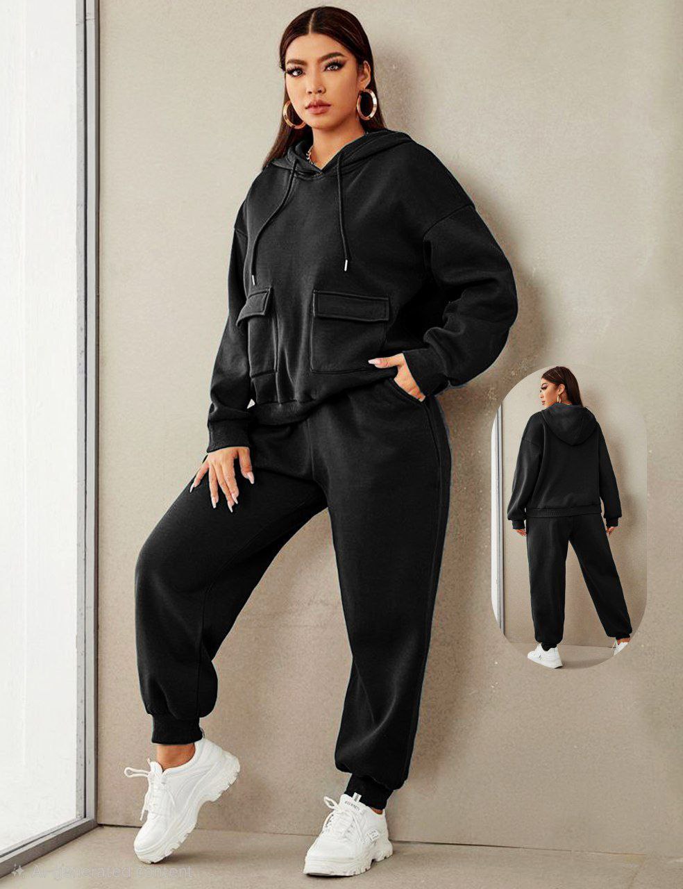 ✅ ست كامل عملي: هودي أوفر سايز + بنطلون ريلاكس بقصة مريحة.