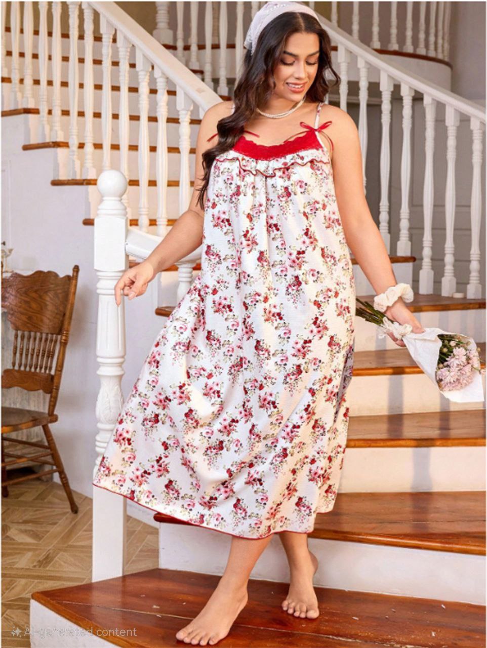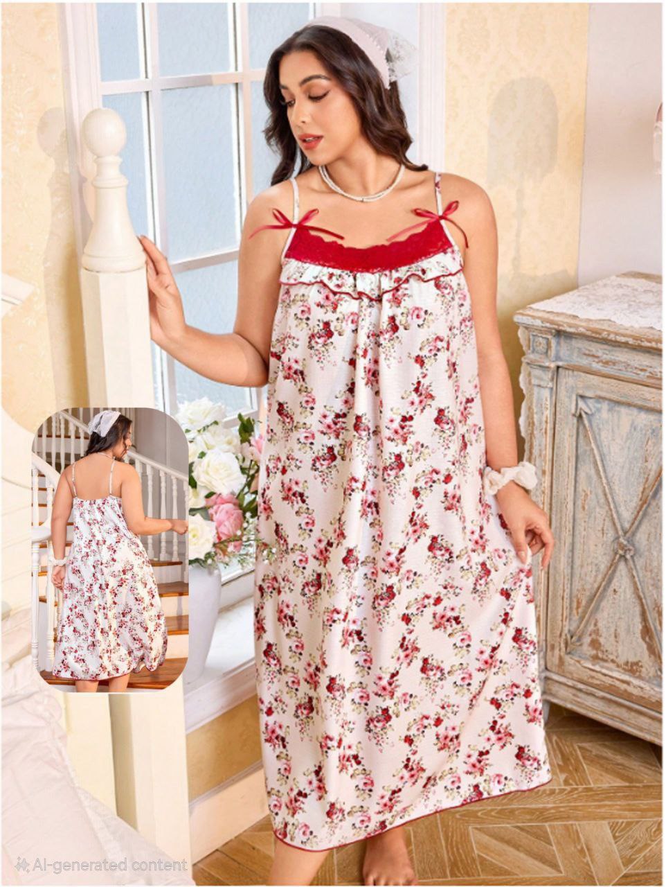 مصنوع من خامة قطن ناعمة مطبوعة بنقشة ورد جميلة، خفيف على الجسم ومش بيكش بعد الغسيل. التصميم واسع ومريح يناسبك من 75 لحد 115 كيلو، فهتتحركي فيه براحتك من غير ما تحسي إنك مخنوقة.