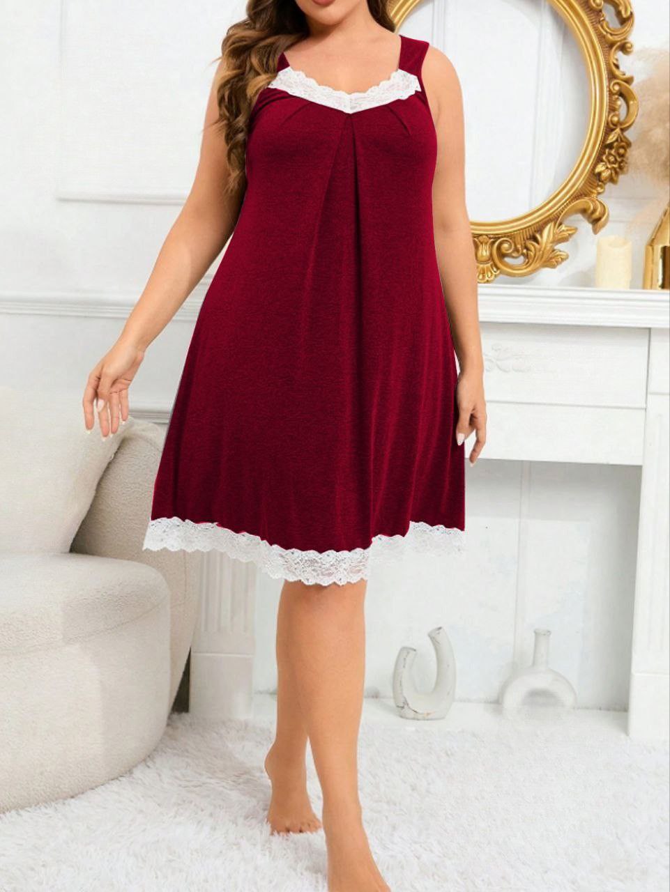 مصنوع من خامة قطن سنجل ليكرا مرنة وناعمة على الجسم، بملمس مريح يديكي إحساس بالراحة طول اليوم. التصميم مزين بدانتيل أبيض ناعم على منطقة الصدر وأسفل الفستان لإضافة لمسة أنثوية كلاسيك.