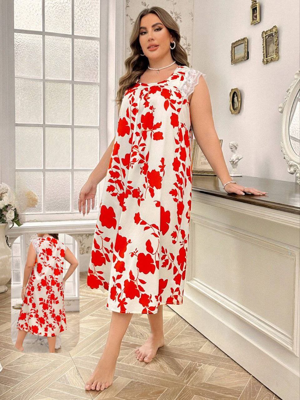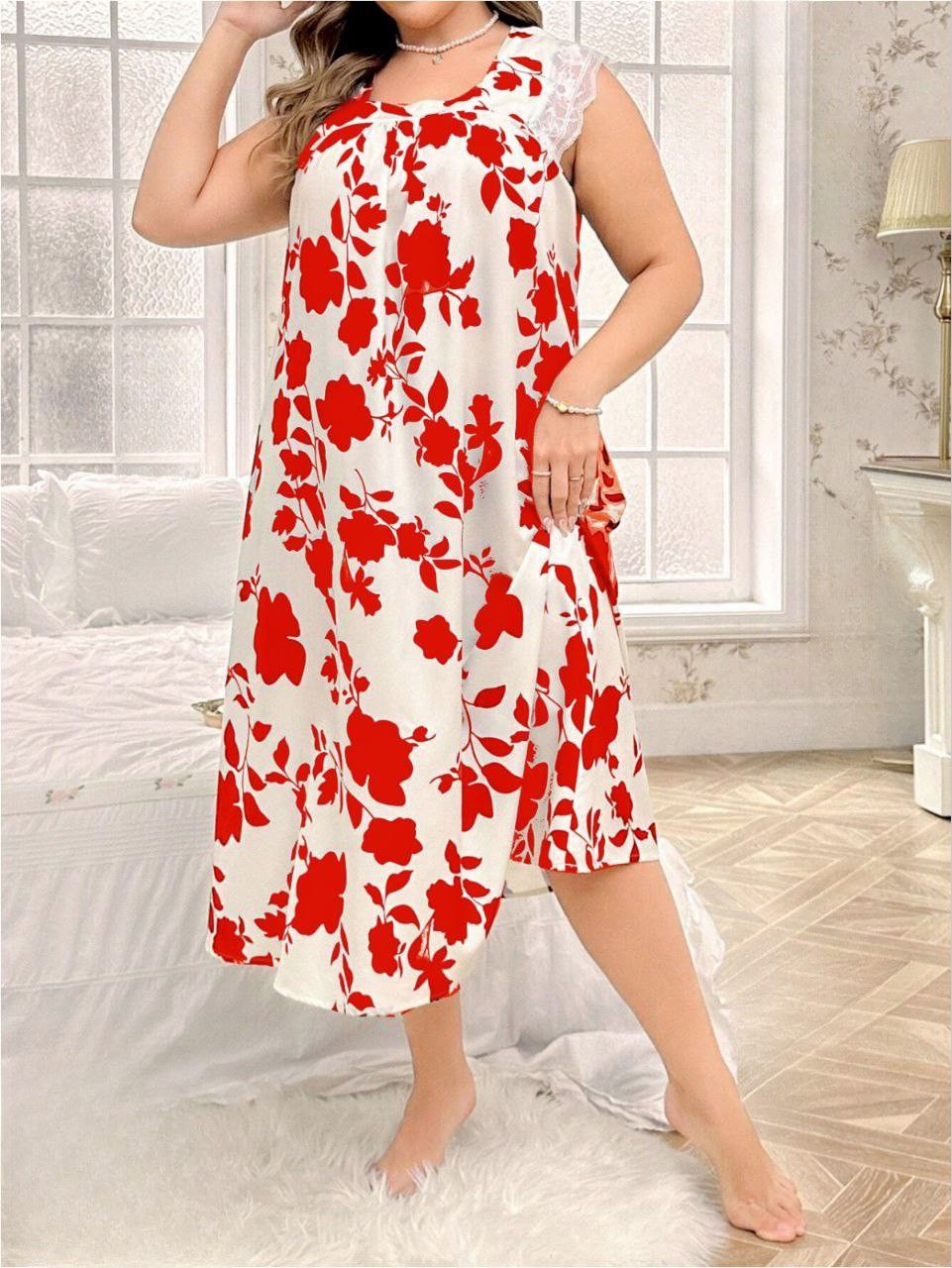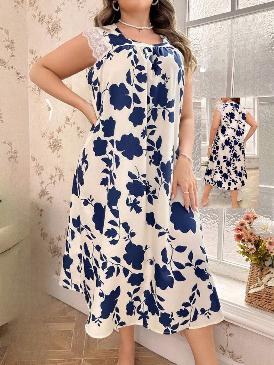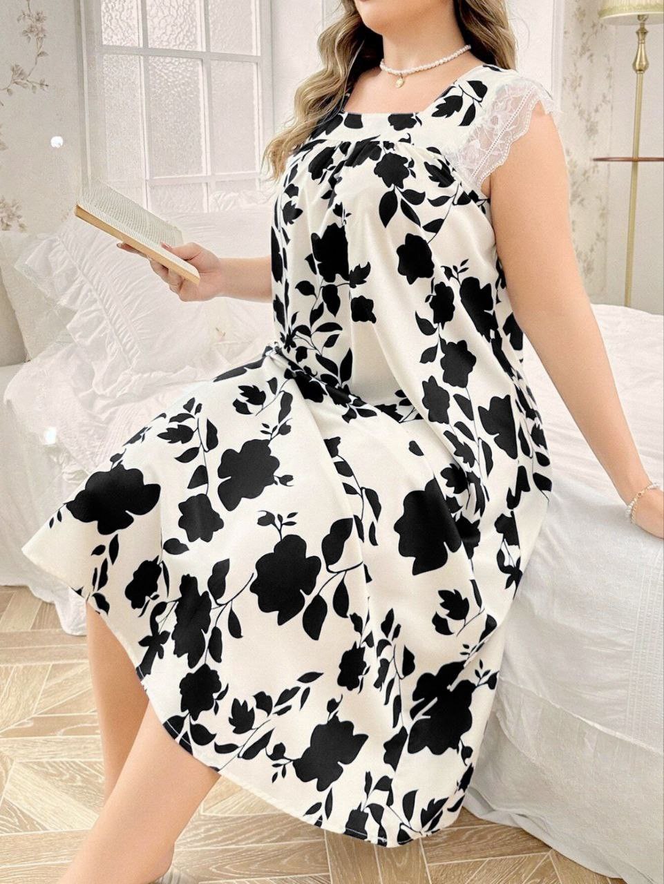 كاش نوم بيج سايز من إيزابيلا بخامة زِبده ناعمة وباردة على الجلد، واسع ومريح من غير أستيك يضيّق، ومعاه كُم دانتيل قصير يدي لمسة أنوثة شيك. نقشة ورود كبيرة على أرضية أوف-وايت تدي شكل مرتب ونضيف للبيت والصيف. قصّة فضفاضة لحد تحت الركبة بتدي ستر وراحة طول اليوم. 🌸
