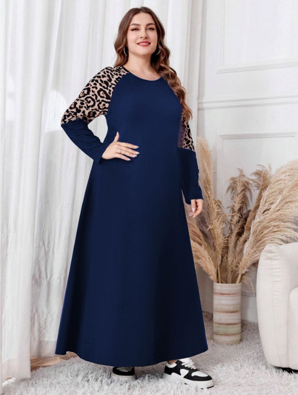 قَصّة A-Line واسعة بتنزل على واسع لحد الكاحل، مع أكمام راجلان مطبوعة ليوبارد تدّي لوك ترندي من غير ما تعلي التفاصيل.