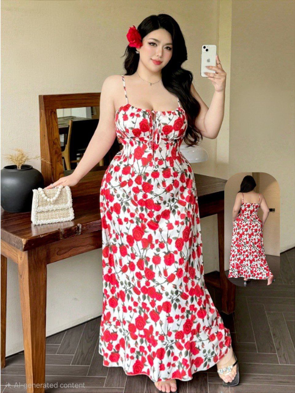 كاش فستان مكسّي من إيزابيلا بقماش زِبدة مستوردة ناعم وبارد على الجلد، برسمة ورد أحمر على أرضية بيضا تضيف لوك صيفي منعِش. قصّة كت برباط أمامي خفيف عند الصدر وتوسيع من منتصف الجسم لأسفل علشان راحة وحركة طول اليوم—مثالي للبيت، المصيف، واللمة الحلوة.