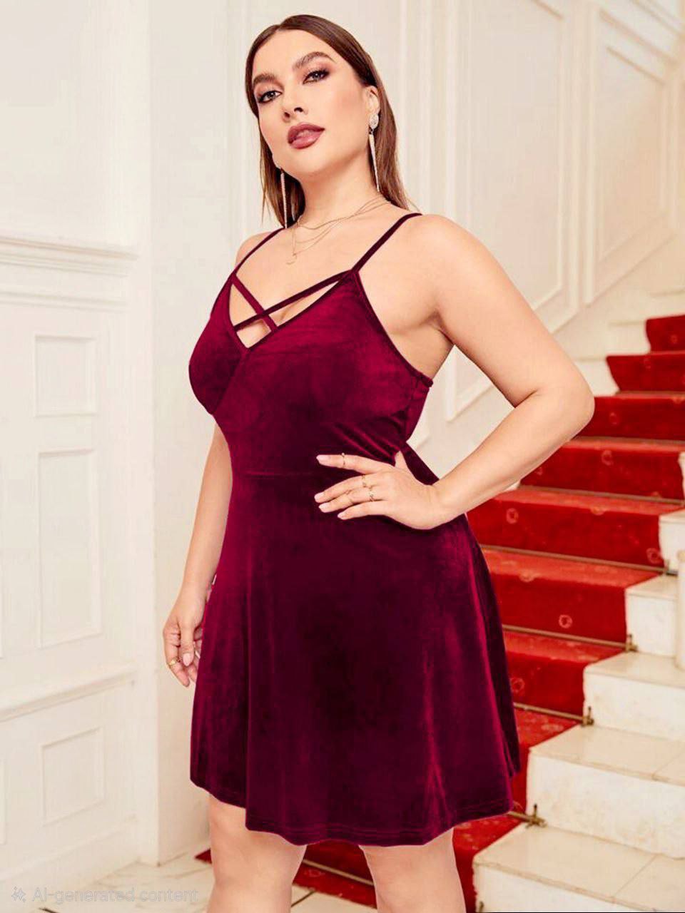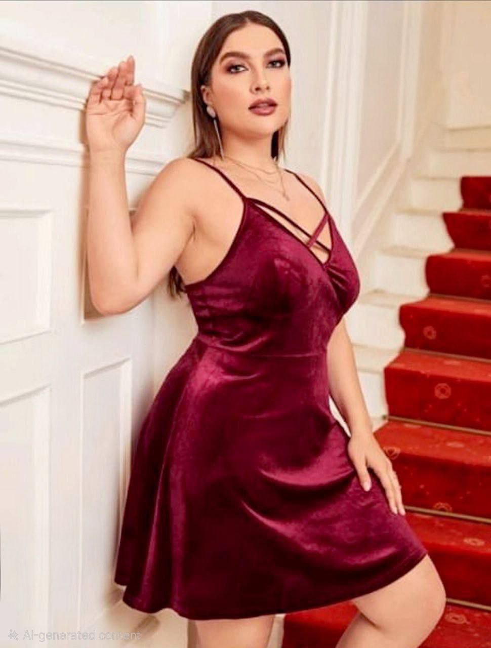 لانجيري قطيفة قصير من إيزابيلا بيج سايز، بقصة A-Line أنثوية وحمالات رفيعة مع تفصيلة سترابي شيك عند الصدر. الخامة قطيفة هايدي مستورد ناعمة ولامعة بشكل رقيق، تِدي إحساس دافئ ولمسة فخمة للمساء والرومانسيات. متوفر ألوان كلاسيك: نبيتي و أسود… لوك بسيط بس مغري وراقي في نفس الوقت.